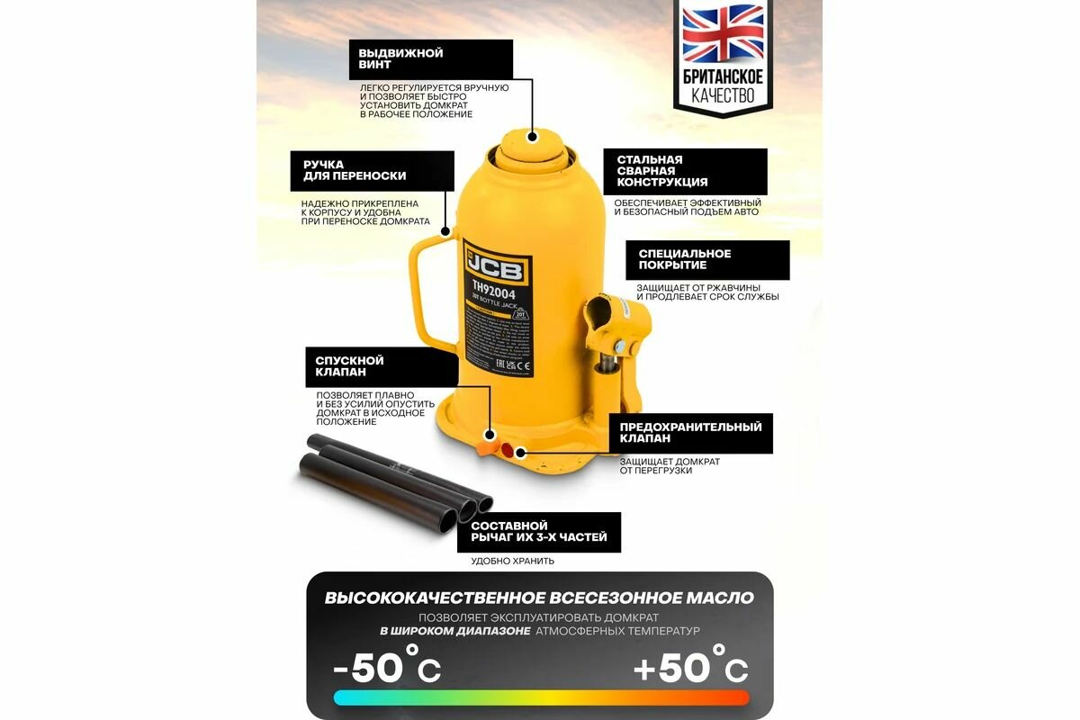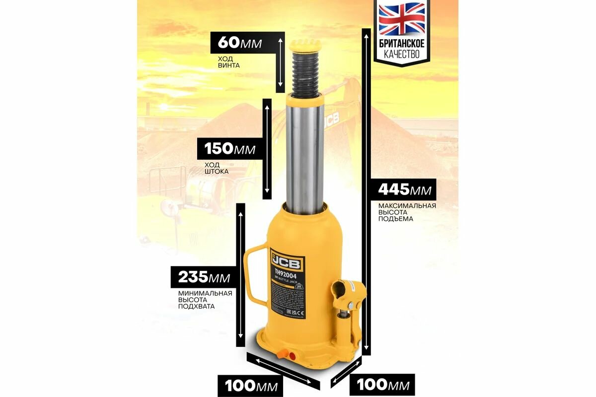 Домкрат JCB бутылочный 20т с клапаном (h min 235мм, h max 445мм, ход штока-150мм, ход винта-60мм): сравнение цен, характеристики, фото, актуальное наличие и цены.