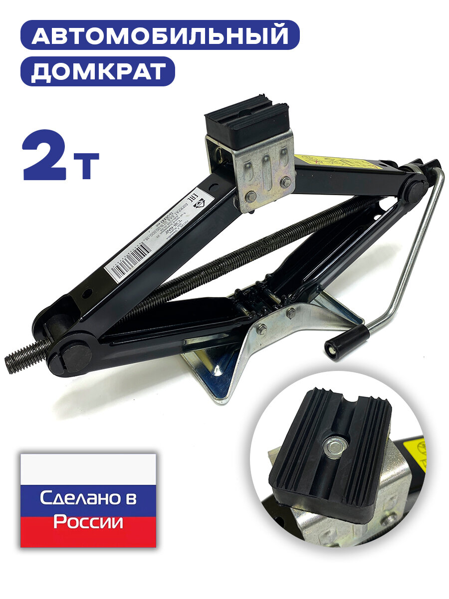 Домкрат автомобильный ромбический 2 тонны механический для автомобиля. Домкрат ромбический отечественного российского производства грузоподъёмностью до 2000 кг предназначен для поднятия грузов, подходит для легковых автомобилей с типом кузова седан, хэтчбэк, купе, кроссовер, универсал, лифтбэк.