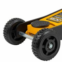 В комплекте присутствует прочная резиновая накладка, которая предотвращает от повреждения автомобиля: исключает возможность повредить кузов, предохраняет от самопроизвольного соскальзывания. Автомобильный домкрат оборудован увеличенными резиновыми колесами, которые обеспечивают работу домкрата на неровных или нетвердых поверхностях (снег, песок, грязь, неровный асфальт), а также удобными ручками для переноски, что делает его удобным для хранения.