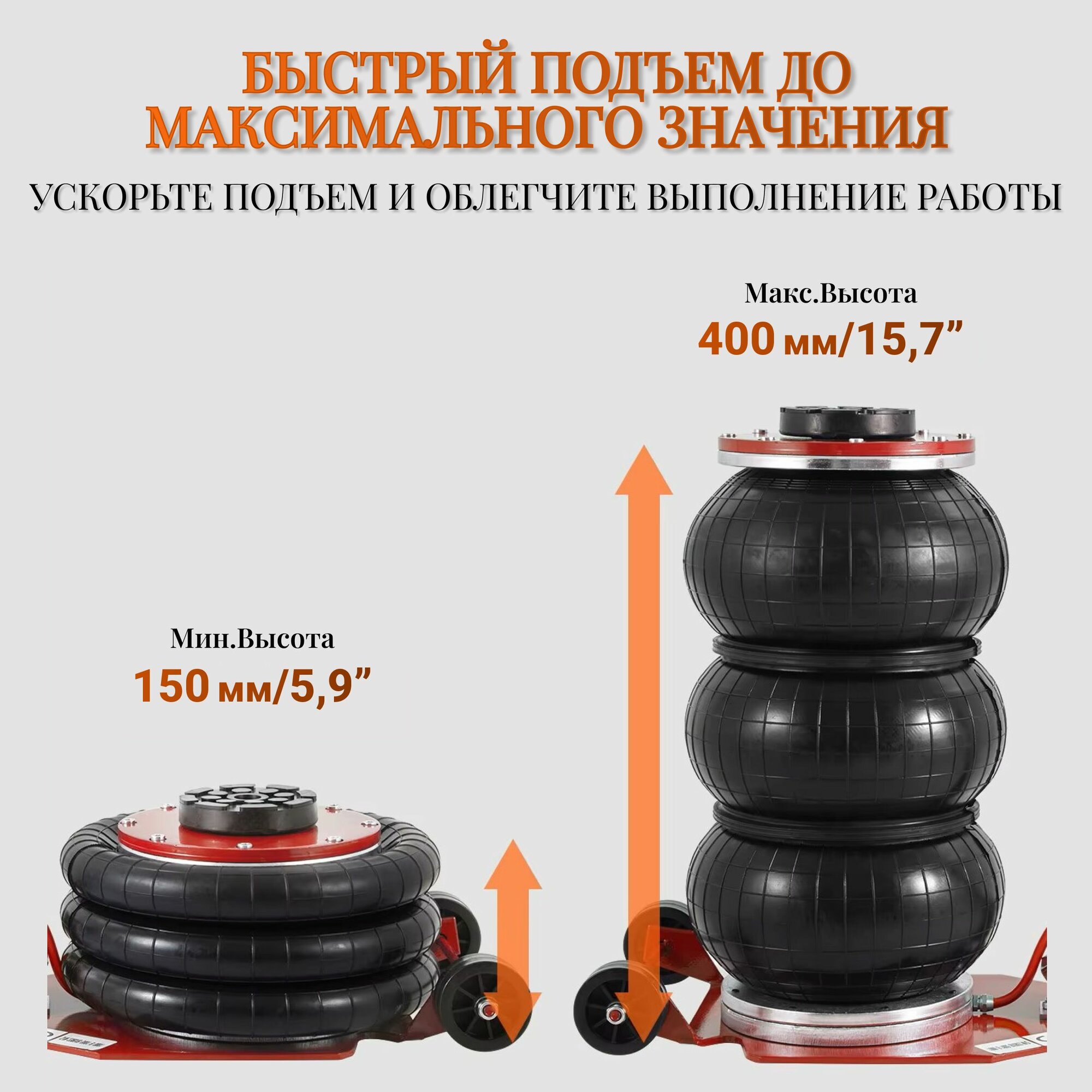 Домкрат подкатной пневматический 3т(6-12bar, h min 150мм, h max 400мм), 3 подушки: сравнение цен, характеристики, фото, актуальное наличие и цены.