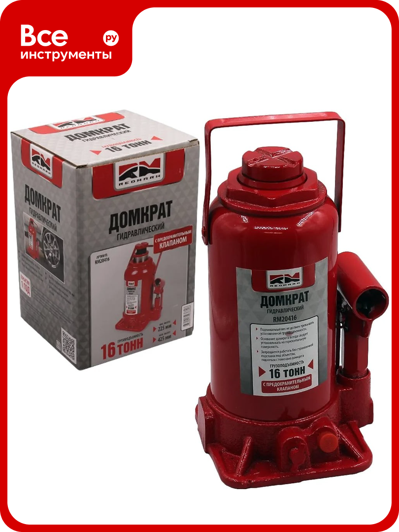 Гидравлический домкрат REDMARK 16 т, с перепускным клапаном, высота мин/макс 225/425 мм RM20416: сравнение цен, характеристики, фото, актуальное наличие и цены.
