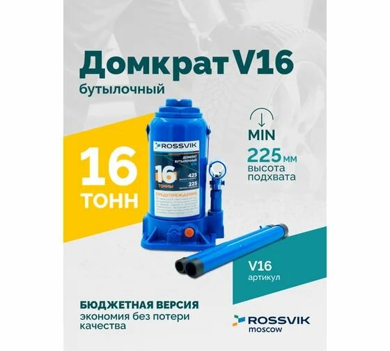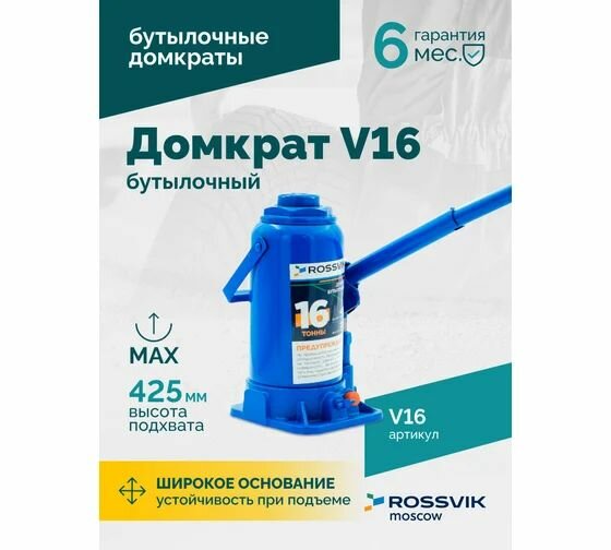 Домкрат ROSSVIK V16, бутылочный, грузоподъёмность 16т, высота подъёма 425 мм: сравнение цен, характеристики, фото, актуальное наличие и цены.