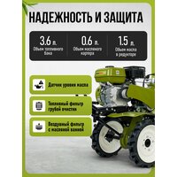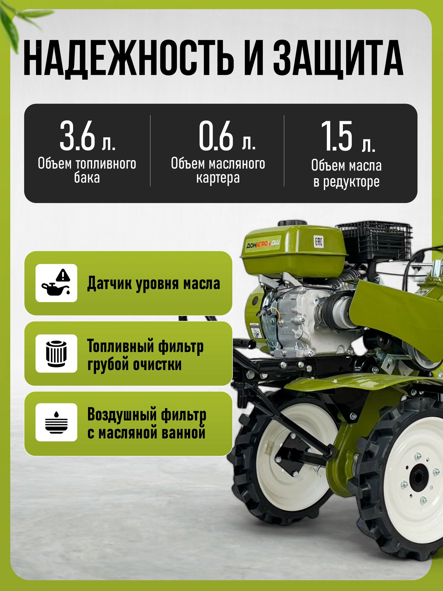 | Подробная комплектация | Мотоблок Колеса 19x7-8 Фрезы (32 саблевидных лезвия, по 4 на секцию) Набор инструментов для сборки Инструкция по эксплуатации |