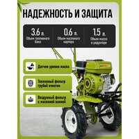 | Подробная комплектация | Мотоблок Колеса 4х8 Фрезы (32 саблевидных лезвия, по 4 на секцию) Набор инструментов для сборки Инструкция по эксплуатации |