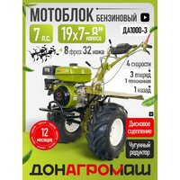 Донагромаш Мотоблок бензиновый редукторный ДА1000-3 (7 л. с, 3 вперед / 1 назад, колеса 19х7-8)