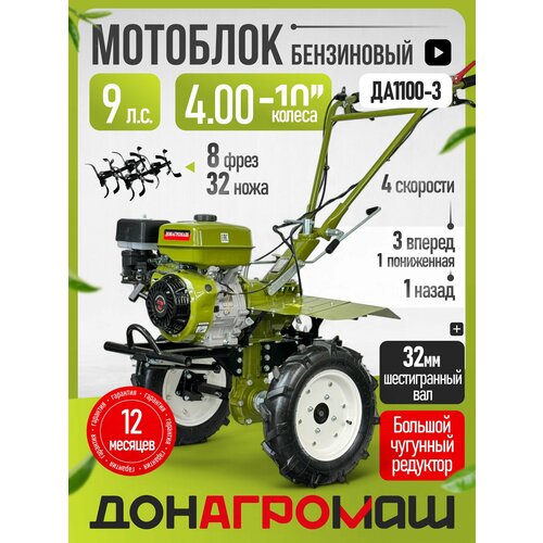 Купить Донагромаш Мотоблок бензиновый редукторный ДА1100-3 (9 л. с, 3 вперед / 1 назад, колеса 4х10) с доставкой по всей России.