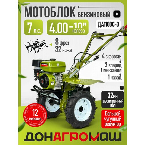 Купить Донагромаш Мотоблок бензиновый редукторный ДА1100C-3 (7 л. с, 3 вперед / 1 назад, колеса 4х10) с доставкой по всей России.