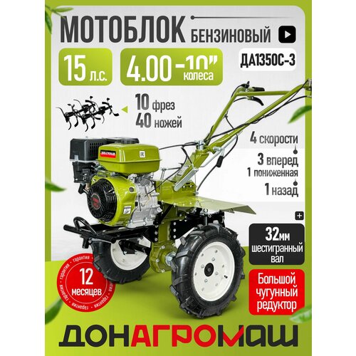 Купить Донагромаш Мотоблок бензиновый редукторный ДА1350C-3 (15 л. с, 3 вперед / 1 назад, колеса 4х10) с доставкой по всей России.