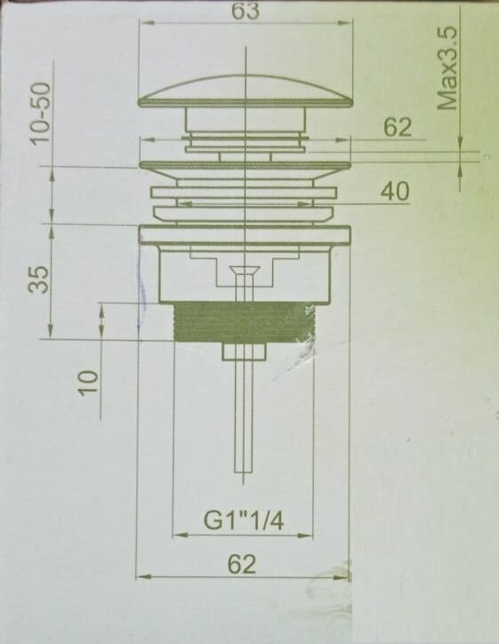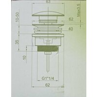 Донный клапан Grocenberg GB106NK имеет диаметр подключения 32 мм, диаметр выпуска 1 1/4", а также встроенный сифон бутылочного типа. Максимальная высота клапана составляет 240 мм, а минимальная - 140 мм.
