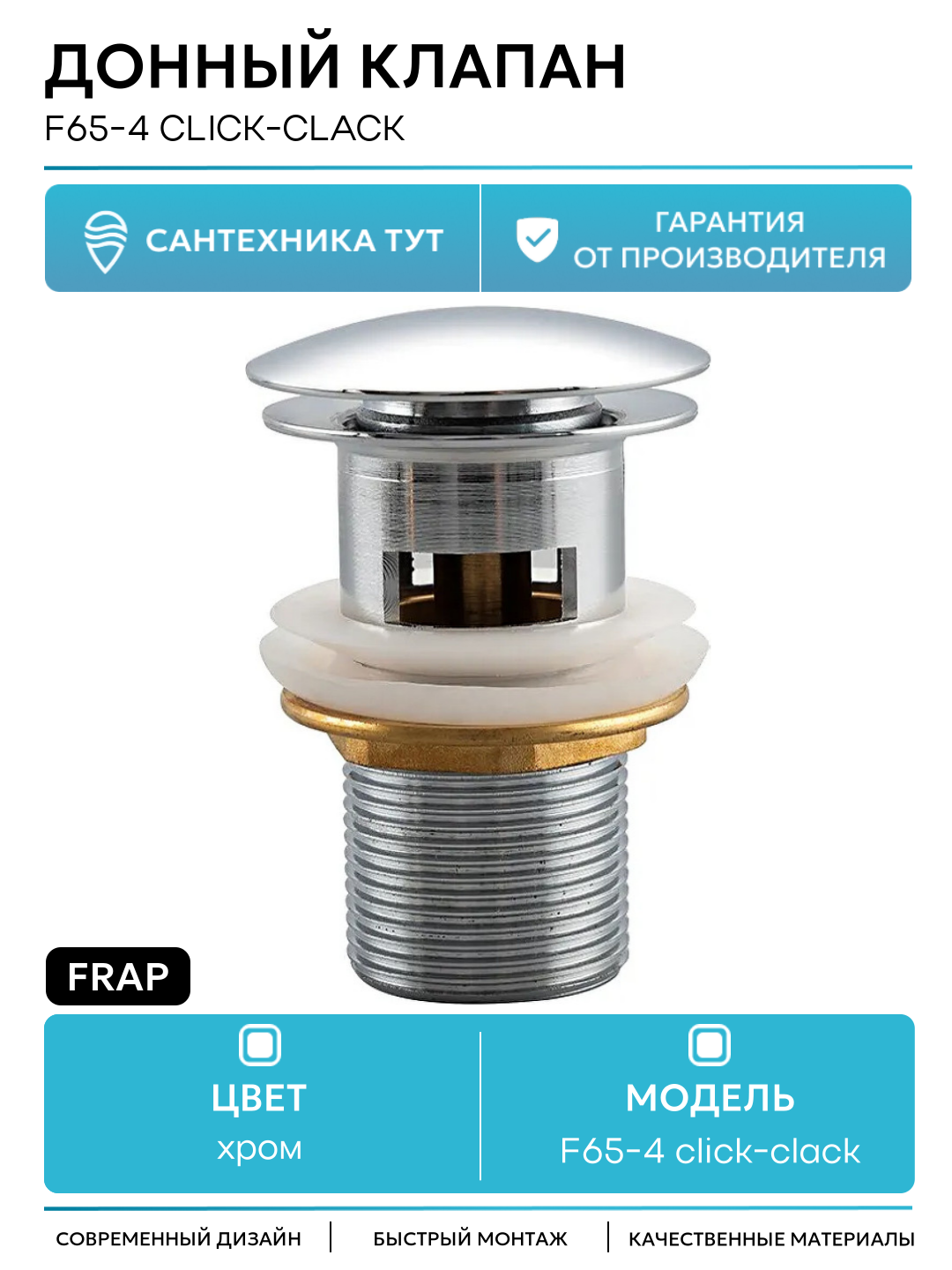 Купить Донный клапан Frap F65-4 click-clack Хром, для ванной комнаты с доставкой по всей России. Донный клапан Frap F65-4 click-clack Хром, для ванной комнаты: сравнение цен, характеристики, фото, актуальное наличие и цены.