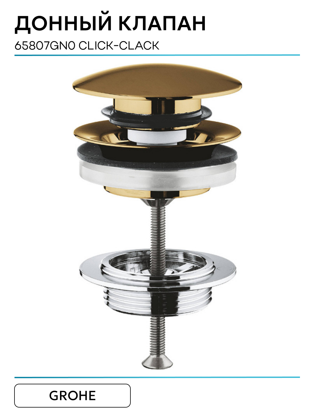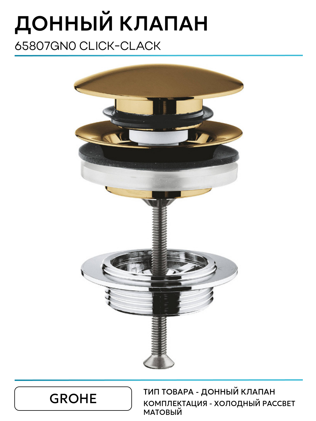 Донный клапан Grohe 65807GN0 click-clack Холодный рассвет матовый латунь золото: сравнение цен, характеристики, фото, актуальное наличие и цены.