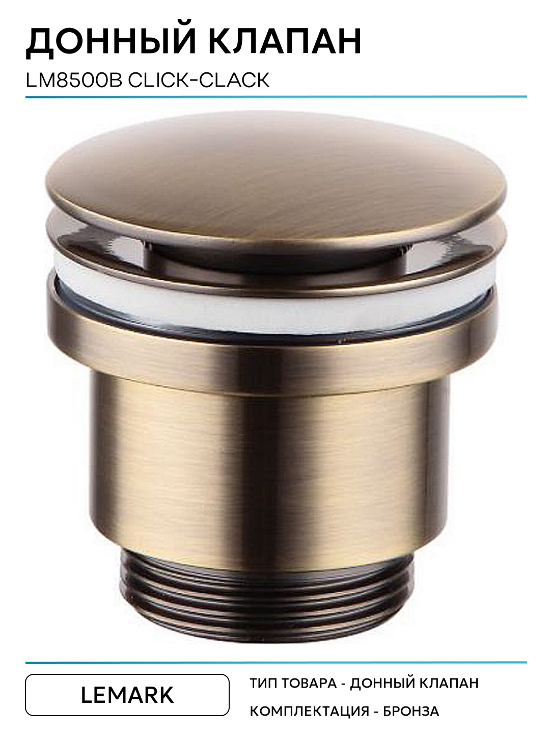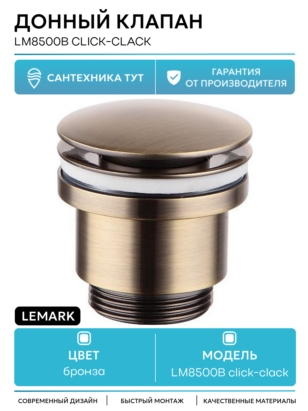 Донный клапан Lemark «ClickClac» LM8500B, латунь, бронза, диаметр слива 1 1/4 дюйма: сравнение цен, характеристики, фото, актуальное наличие и цены.