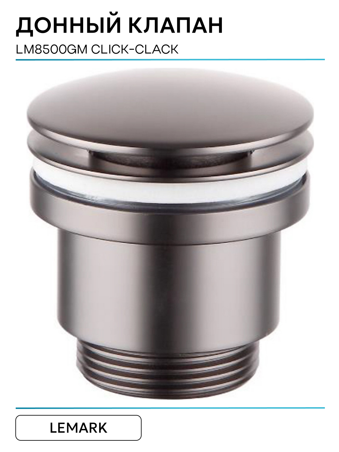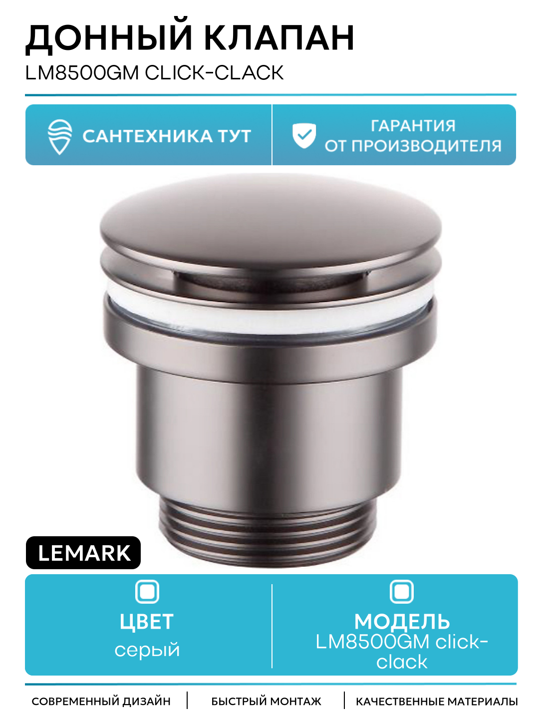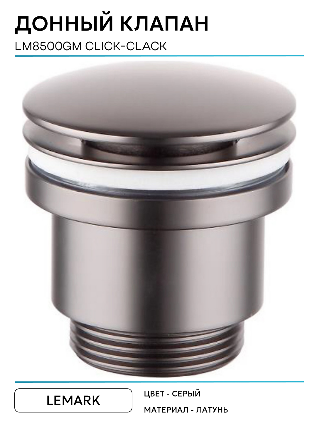 Купить Донный клапан Lemark LM8500GM Click-clack универсальный, латунь, графит с доставкой по всей России. Донный клапан Lemark LM8500GM Click-clack универсальный, латунь, графит: сравнение цен, характеристики, фото, актуальное наличие и цены.