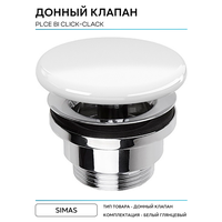 Донный клапан Simas PLCE bi click-clack - это стильный и функциональный аксессуар для вашей ванной комнаты. Он выполнен в белом глянцевом цвете, что придает ему современный и элегантный вид.