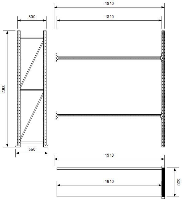 Доп. секция каркаса Л50 2000х500х1800 — 2 яруса (без полок)