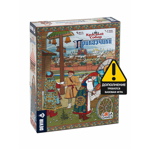 Приказчики – это новое дополнение к красочной стратегии, в которой вам предстоит взяться за возведение культового храма Василия Блаженного Красный Собор. Коробка дополнения довольно увесистая и добавит в ваши партии немало разнообразия и расширит просторы для новых стратегий. В коробке дополнения вы найдете сразу 10 новых гильдий, которые можно комбинировать с гильдиями базовой игры, увеличивая разнообразие возможностей для торговли. Помимо этого в игру добавятся новые чертежи, фигурки казаков, бриллианты, дополнительный кубик, карта для одиночного режима и карта России, по которой вы будете путешествовать в поисках новых талантов.