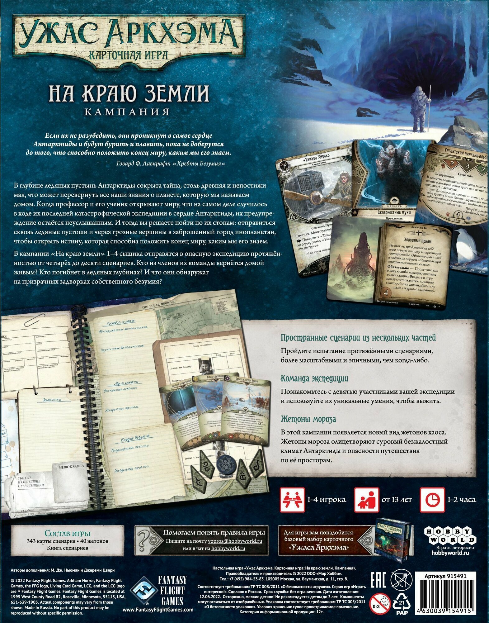 Дополнение к настольной карточной игре Ужас Аркхэма На краю земли Кампания: сравнение цен, характеристики, фото, актуальное наличие и цены.
