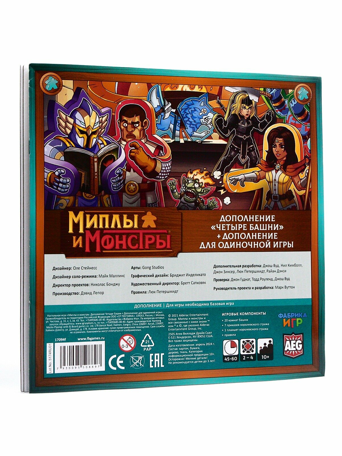- Дополнение «Четыре башни» разнообразит игровой процесс, даст новый вариант получения победных очков и увеличит реиграбельность «Миплов и Монстров».