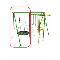Комплектация: шведская стенка, рукоход, турник , качели гнездо . Допустимая нагрузка: до 100 кг Вес комплекса: 45 кг;
