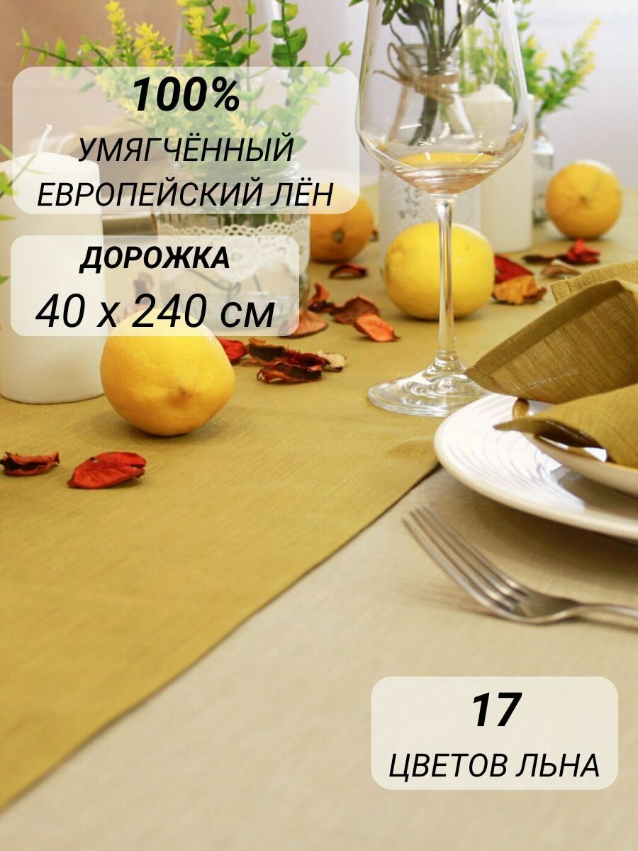 Купить Дорожка Avis Atelier, лен 100%, 40×240 см, прямоугольная, горчичная с доставкой по всей России.