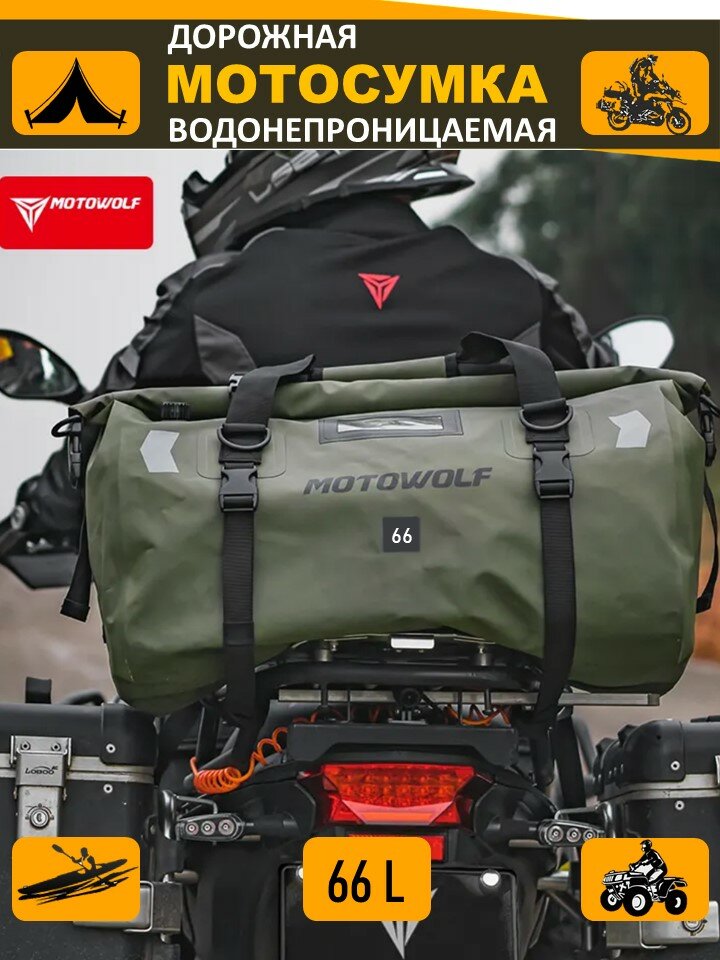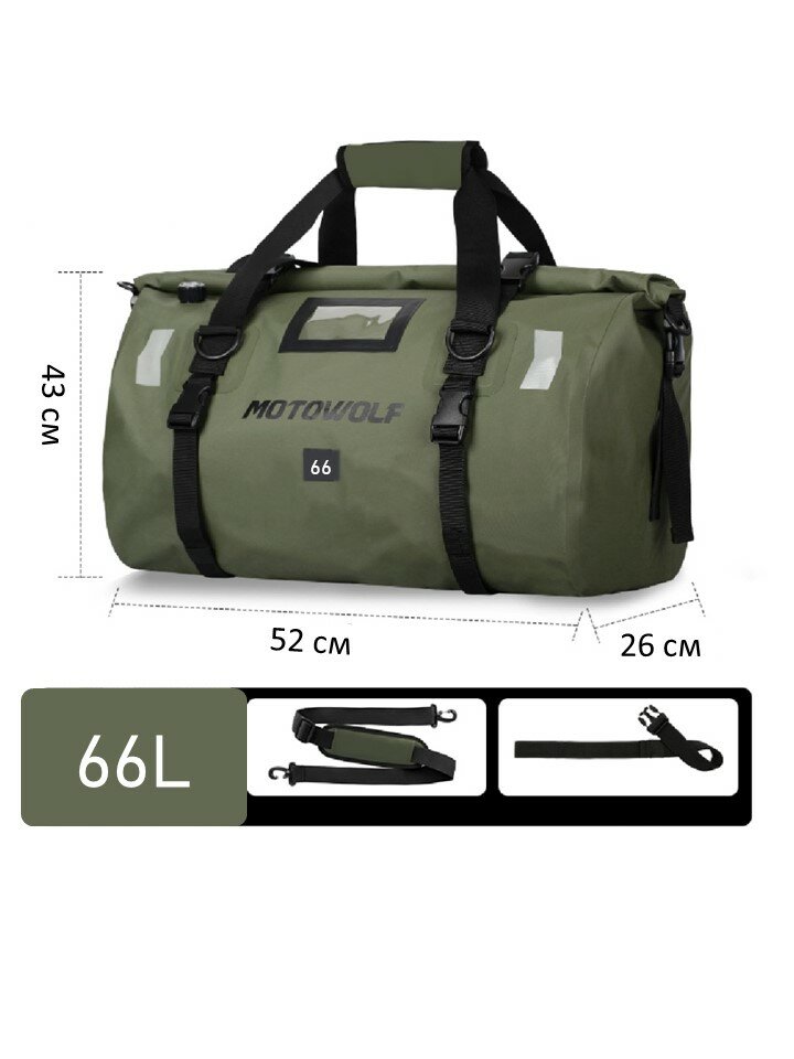 Дорожная сумка для мотоцикла, водонепроницаемая мотосумка на багажник и сиденье, объем 66 литров, зеленый армейский: сравнение цен, характеристики, фото, актуальное наличие и цены.