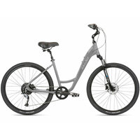 Комфортабельный женский велосипед с оборудованием высшего любительского класса Shimano, 9 скоростей. Технические особенности: алюминиевая рама Heat-treated 6061 aluminum, амортизационная вилка SR Suntour SF20 NEX HLO-DS, двойные обода Double-Wall Alloy, дисковые гидравлические тормоза Shimano MT201, амортизированный подседельный штырь, регулируемый вынос, комфортное седло. Подходит для комфортного катания в городских условиях и по несложным маршрутам в лесу.