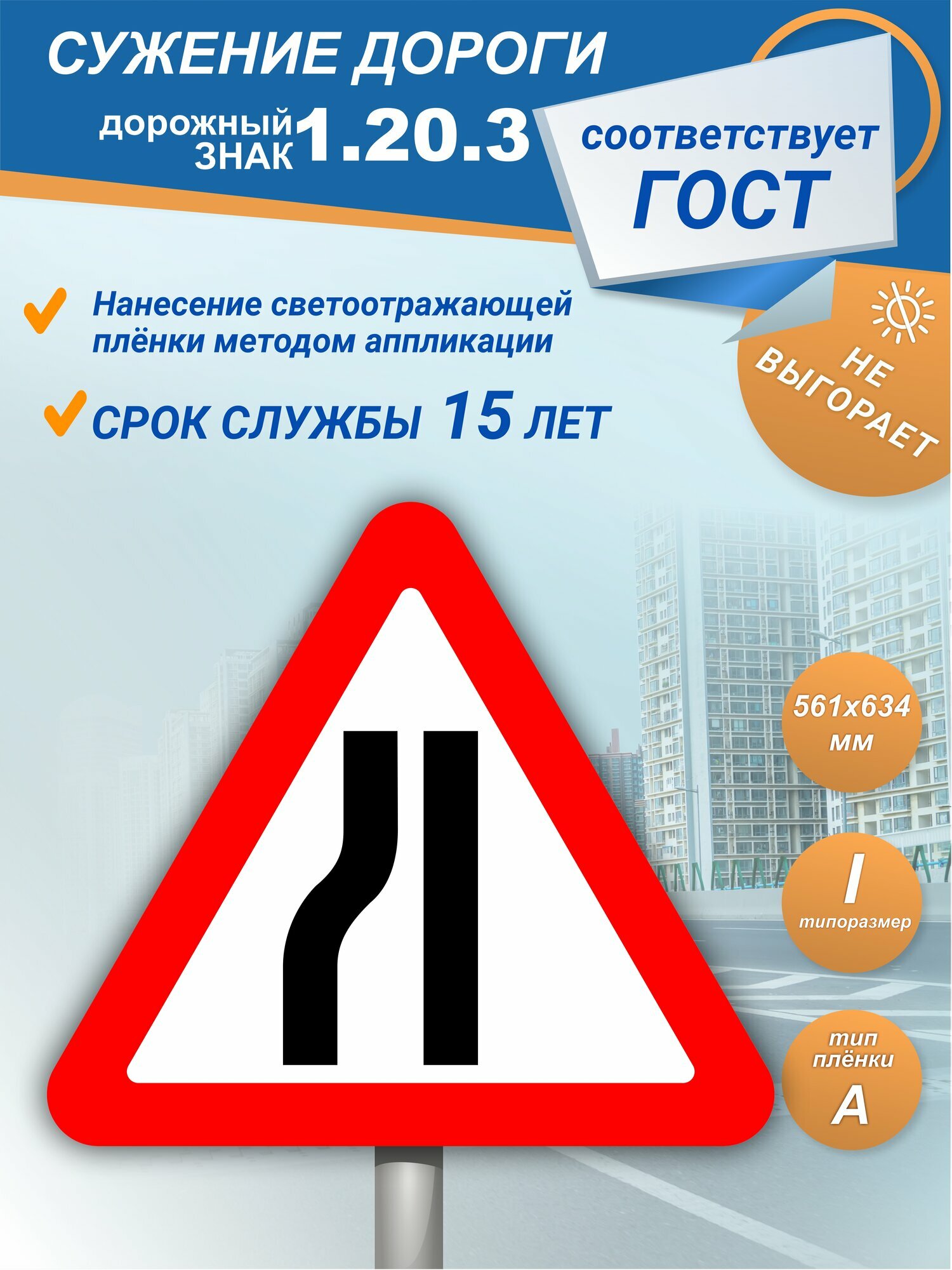 Купить Дорожный знак 1.20.3 Сужение дороги 1 типоразмер с доставкой по всей России. Дорожный знак 1.20.3 Сужение дороги 1 типоразмер: сравнение цен, характеристики, фото, актуальное наличие и цены.