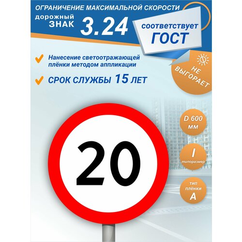 Дорожный знак 3.24 Ограничение максимальной скорости 20 км/ч: сравнение цен, характеристики, фото, актуальное наличие и цены.