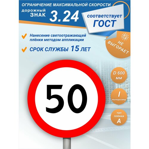 Металлический дорожный знак 3.24 Ограничение максимальной скорости