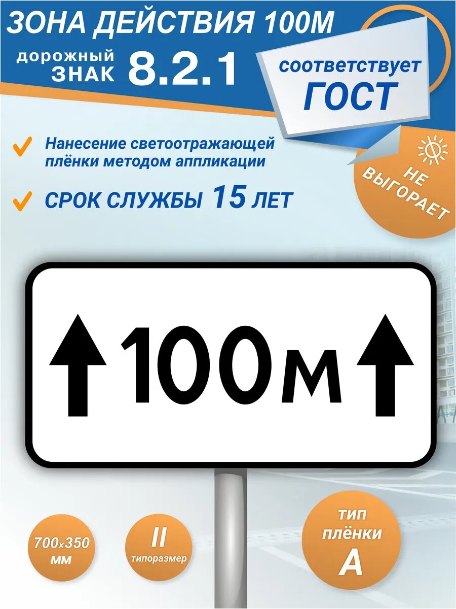 Дорожный знак 8.2.1 Зона действия 100м: сравнение цен, характеристики, фото, актуальное наличие и цены.
