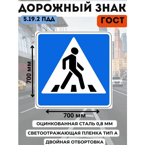 Дорожный знак металлический ГОСТ пешеходный переход п. 5.19.2 ПДД, размер знака 700/700 мм: сравнение цен, характеристики, фото, актуальное наличие и цены.