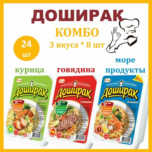 Купить Доширак 90 г набор: курица 8 шт + говядина 8 шт + морепродукты 8 шт лапша быстро приготовления в лотке/Россия с доставкой по всей России. Доширак 90 г набор: курица 8 шт + говядина 8 шт + морепродукты 8 шт лапша быстро приготовления в лотке/Россия: сравнение цен, характеристики, фото, актуальное наличие и цены.