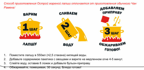 Особенностью этого продукта является его состав. В него входят сушеные овощи, пряности и перец, что придает лапше неповторимый вкус. В составе также присутствуют сушеные водоросли, которые добавляют продукту экзотический азиатский колорит.