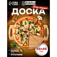 Доска для пиццы деревянная с ручками Adelica «Итальяно», 55×45×2 см, пропитано маслом, берёза