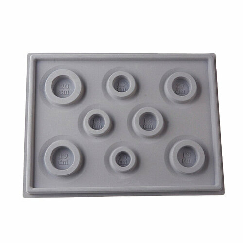 Серая пластиковая доска для сборки браслетов (планшет для сборки украшений) с флоковым покрытием. На доске имеются 8 круглых лунок с бороздками от 13 до 20 см: подойдет для подбора дизайна браслетов всех стандартных размеров, как детских, так и взрослых браслетов. Лунки довольно глубокие, в них можно положить бусины и фурнитуру. Флоковое покрытие не дает бусинам перекатываться. Цена за 1 доску. Внимание: возможны потертости и пятнышки на покрытии.