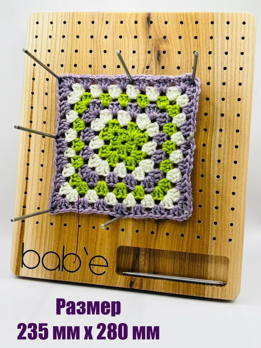 Размеры: Доска имеет оптимальный размеры (высота 280 мм, ширина 235 мм), подходящие для стандартных бабушкиных квадратов, что облегчает процесс блокировки. Ее размеры позволяют работать с квадратами различных диаметров.
