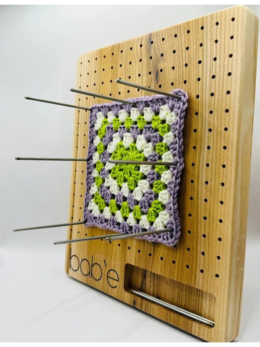 Функциональность: Специально разработанный дизайн доски позволяет надежно фиксировать бабушкиные квадраты в удобной для вас позиции. Блокатор помогает избежать перекосов и деформаций вязаных изделий, обеспечивая им аккуратный и профессиональный вид.