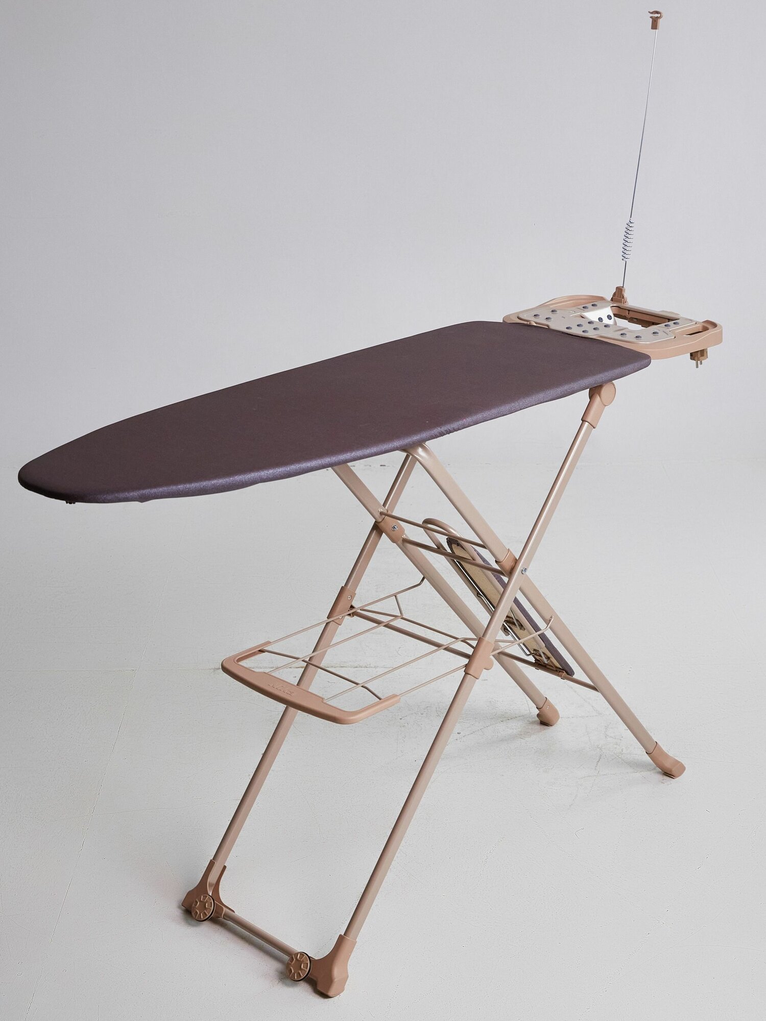 | Комплектация | встроенная розетка для утюга, гладильный рукав, кронштейн для провода, подставка для парогенератора, полка для белья, удлинитель |