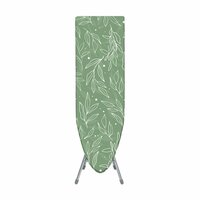 гладильная доска с овальной формой, чехол с зеленым фоном и белым растительным узором, металлические складные ножки