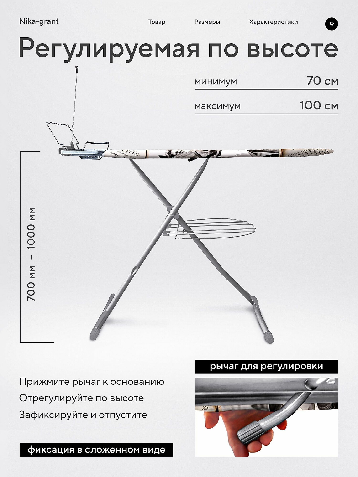 Купить Доска гладильная металлическая Nika с розеткой и полкой для белья с доставкой по всей России. Доска гладильная металлическая Nika с розеткой и полкой для белья: сравнение цен, характеристики, фото, актуальное наличие и цены.