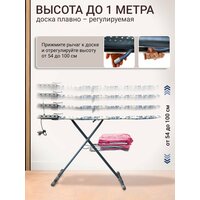 Ника Валенсия 1 самая широкая и высокая гладильная доска. Доска гладильная имеет металлический каркас, гладильная поверхность также выполнена из перфорированного металла. Гладильная доска с плавной регулировкой по высоте до 1 метра оснащена подставкой под утюг или парогенератор, полкой для белья и держателем для провода. Широкая подставка под утюг и парогенератор. Съемный чехол изготовлен из поролона и хлопка. Электросоединитель 1,9 м. Кронштейн для провода утюга. Розетка стандартная. Полка для белья с максимальной нагрузкой 5 кг. Габаритные размеры: гладильная поверхность (Д х Ш) - 123,5 х 46 см; В сложенном виде (Д х Ш х В) - 163 х 46 х 8 см; Вес - 9,8 кг. В нашем магазине хозяйственных товаров Вы можете ознакомится с полным ассортиментом товаров для дома.
