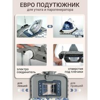 встроенная розетка для утюга, гладильный рукав, кронштейн для провода, подставка для парогенератора, подставка для утюга, полка для белья, удлинитель