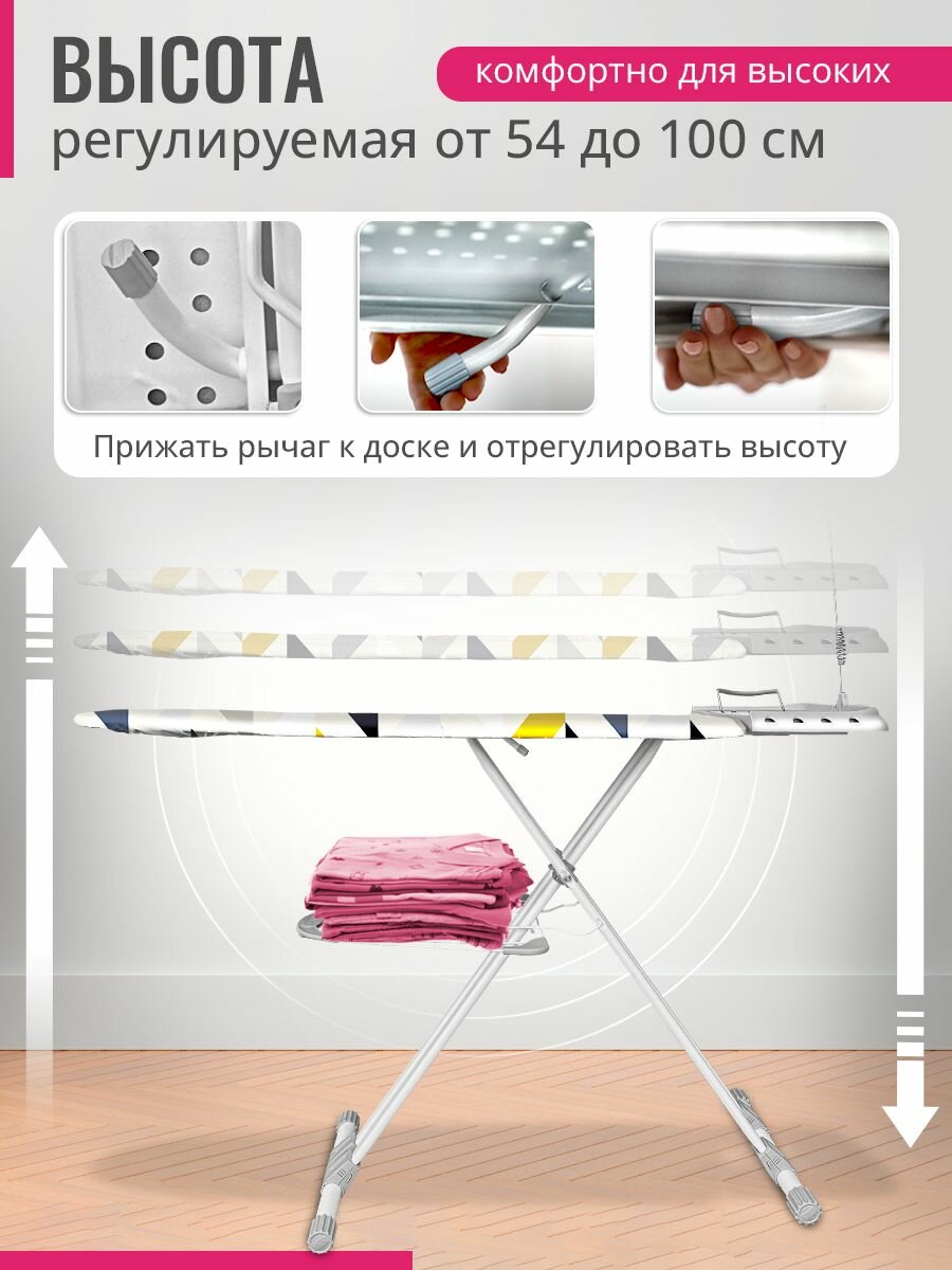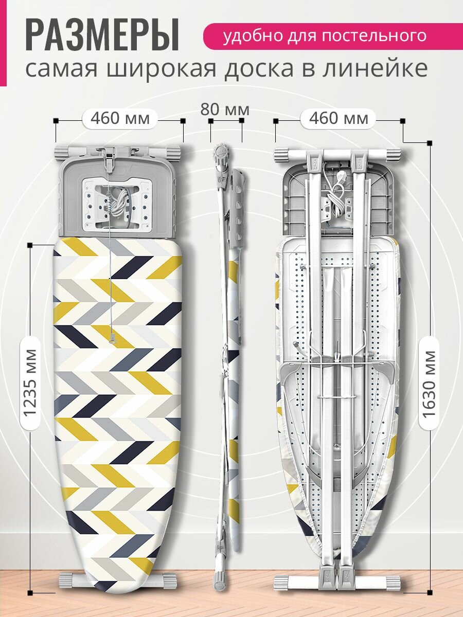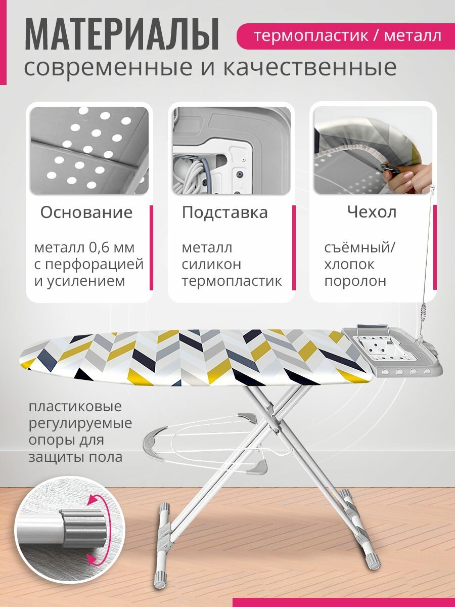 встроенная розетка для утюга, гладильный рукав, подставка для утюга, полка для белья, удлинитель