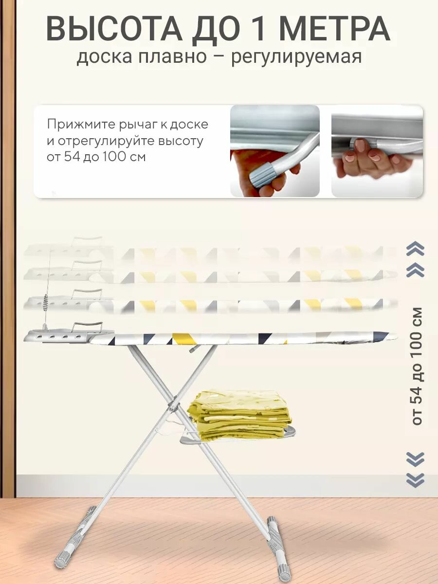 не требует сборки, противоскользящие насадки, регулировка высоты, съемный чехол, чехол с антипригарным покрытием