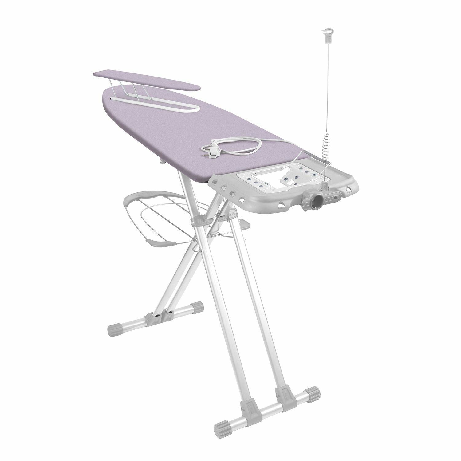 встроенная розетка для утюга, гладильный рукав, кронштейн для провода, подставка для парогенератора, подставка для утюга, полка для белья, удлинитель