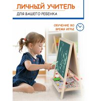 Купить Доска магнитно-маркерная, 27х39 см, деревянный обучающий мольберт с алфавитом для девочек и мальчиков, двухсторонняя для рисования с буквами, цифрами, фигурами, с мелками, маркером и губкой с доставкой по всей России.