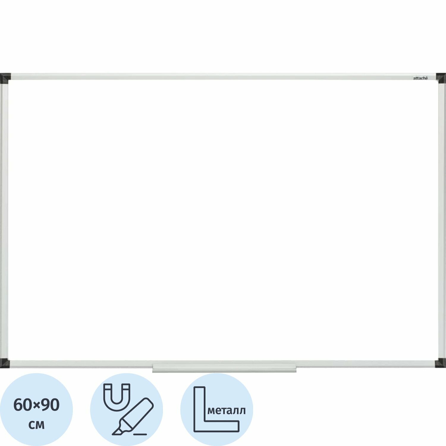 Стильная ультратонкая магнитно — маркерная доска Attache Economy Ultra Black, 60×90 см. В основании доски прочный гофролист из картона толщиной 4 мм. Толщина металла 0,3 мм. Размер рабочей поверхности: 57×87 см. Лаковое покрытие. Светлая алюминиевая рама толщиной 6 мм с прочными пластиковыми уголками черного цвета. Магнитно — маркерная доска используется во время презентаций или для отображения материала, который нужно наглядно представить. Металлическая белая глянцевая поверхность позволяет крепить на доску важную информацию с помощью магнитов, использовать бумагу для заметок с клейким краем (стикеры) или писать специальными whiteboard маркерами сухого стирания, которые легко удаляются. Таким образом, на доске удобно размещать информацию, которая часто меняется. Эти доски используются для комфортной работы с информацией в организациях, учебных заведениях и домашних офисах.