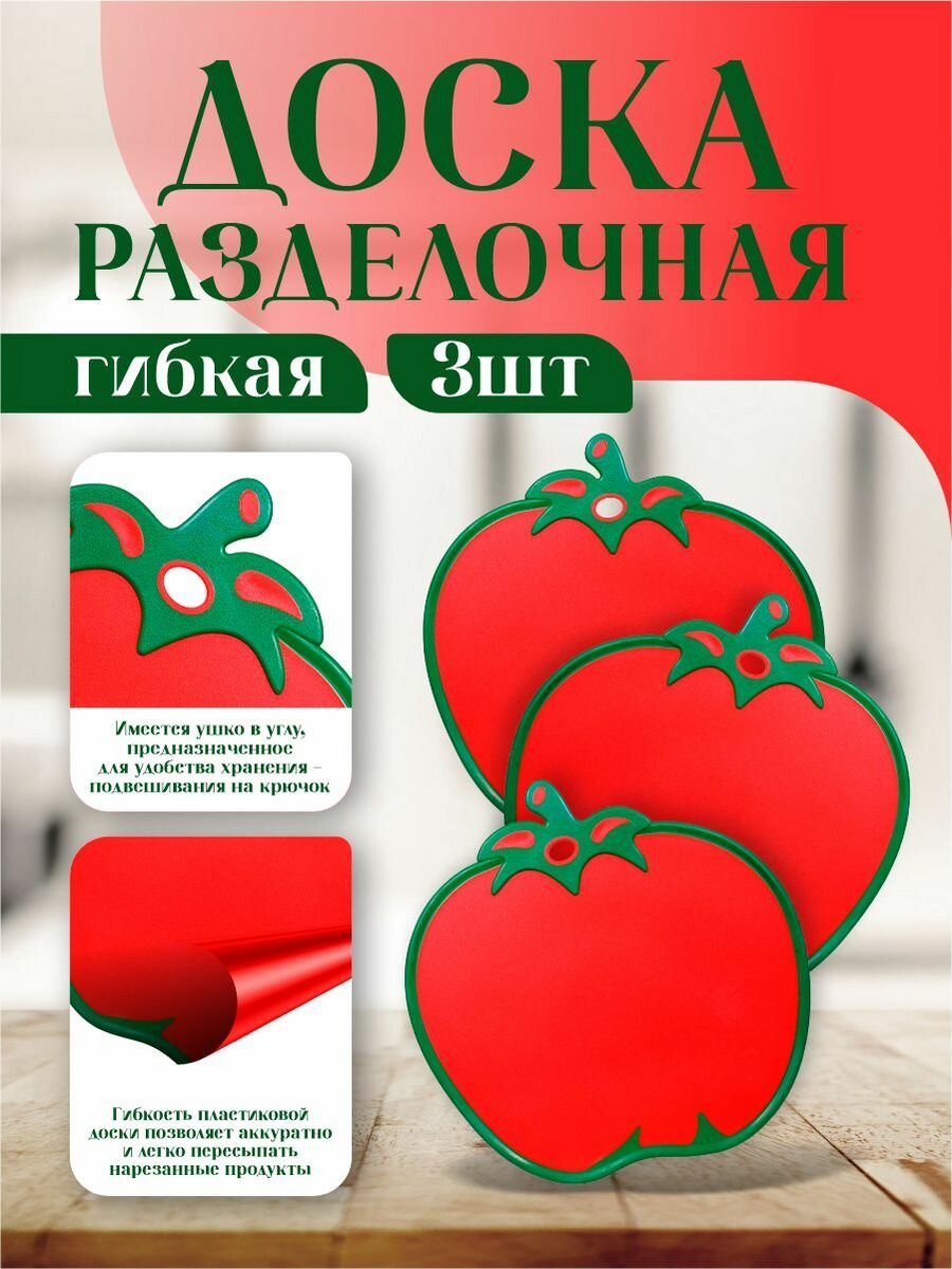Купить Доска разделочная elfplast «Tomato», пластиковая, гибкая 320x260x8 мм 3 шт, (красный/зеленый) 597 с доставкой по всей России.