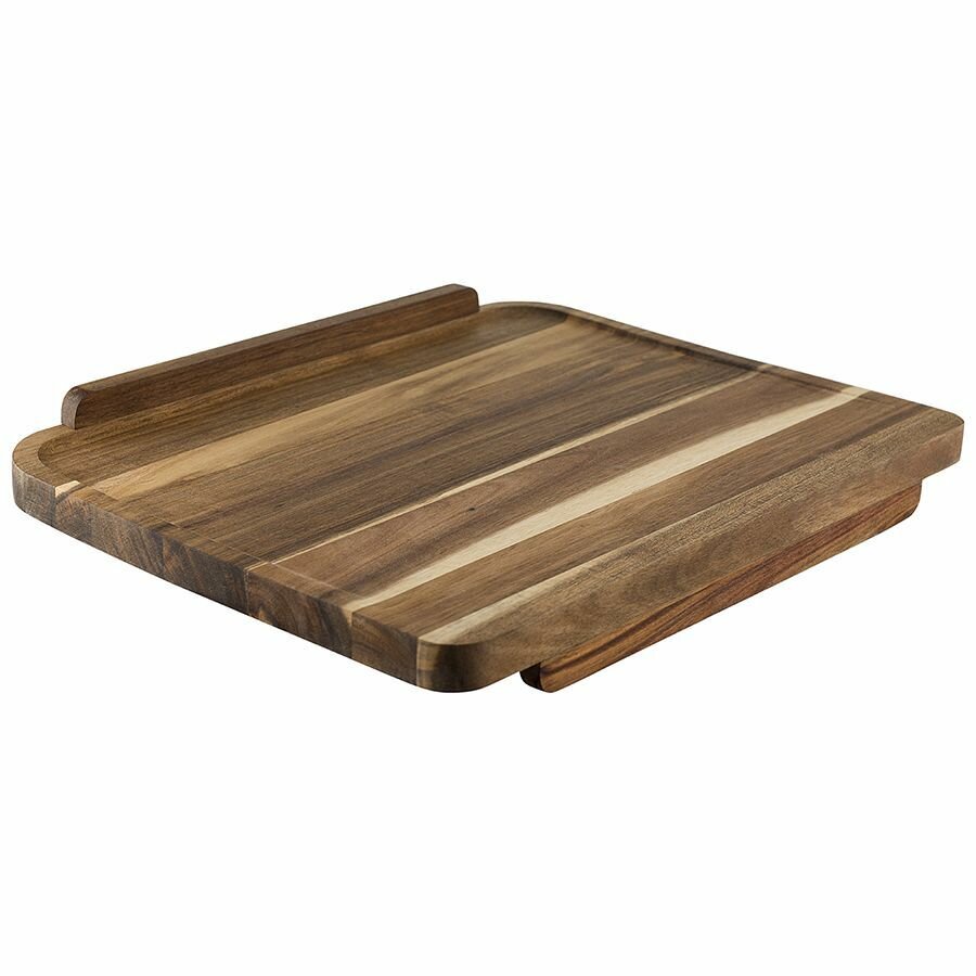 - Доска выполнена из акации – благородной породы древесины, устойчивой к перепадам влажности. - Благодаря специальной конструкции ее можно использовать с двух сторон и надежно фиксировать, прижимая к краю столешницы. - Фиксатор работает и как подставка, удерживая доску в нужном положении, чтобы она не скользила по столу. - Одна сторона доски имеет идеально гладкую поверхность, предназначенную для раскатывания теста. - Небольшие бортики задерживают сок, сохраняя рабочее место чистым во время приготовления пищи. - Экологичный материал гарантирует безопасность для вашего здоровья и окружающей среды.