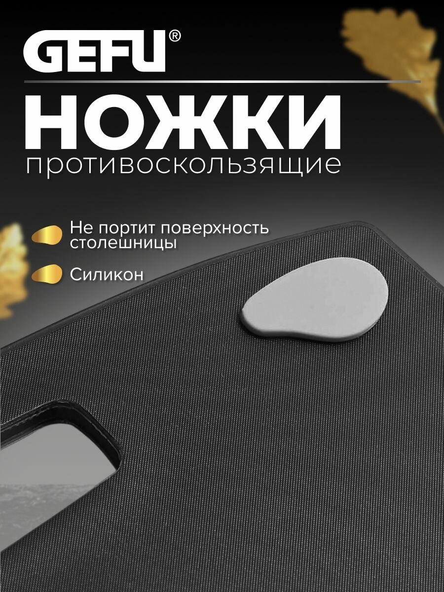 Благодаря противоскользящим силиконовым ножкам доска фиксируется на рабочей поверхности.